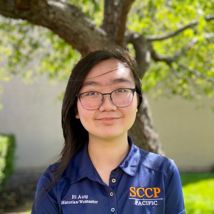 Hi I am Ei Aung and before pharmacy school, I was a pre-pharmacy student at UOP as my undergrad. The reason I joined SCCP is because clinical pharmacy is one of my interests and I enjoyed that SCCP offers a variety of opportunities to learn more about clinical pharmacy such as multiple speaker events and clinical challenges. I love watching movies and dramas during my free time.