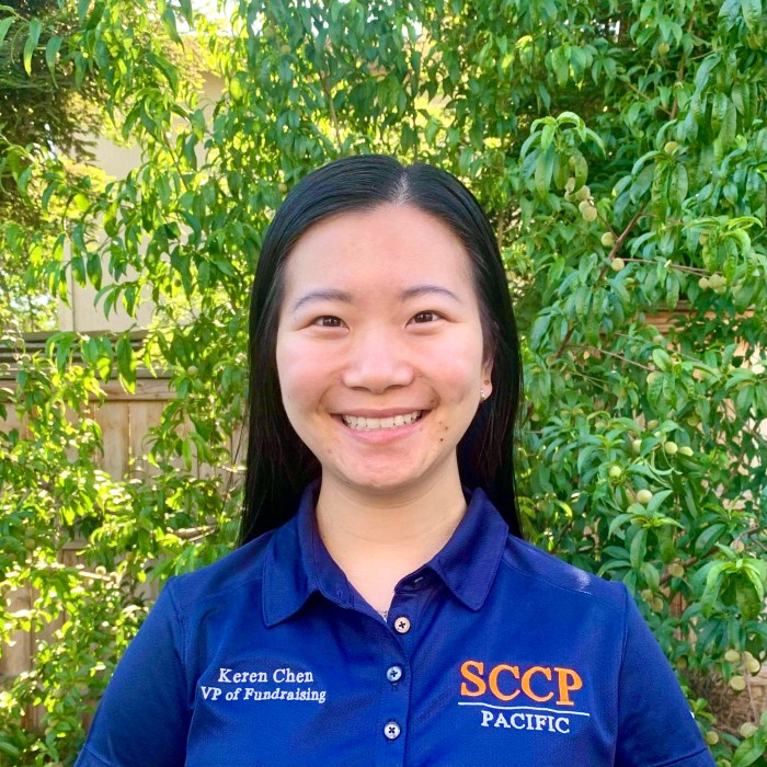 Hi! My name is Keren Chen. Before entering Thomas J. Long School of Pharmacy, I was a pre-pharmacy student. I joined SCCP because I value continual patient interaction and was interested in the many opportunities clinical pharmacy offers. Through SCCP and the various events we host, I hope to learn more about and develop a multitude of skills necessary for future career opportunities whether it be hospital pharmacy or others. When I have spare time, I like to spend time with family and friends, try new arts and crafts, and discover new music!