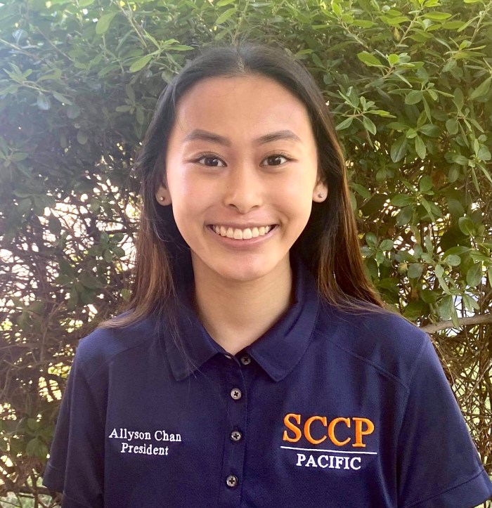 Hello! My name is Allyson Chan. Prior to pharmacy school, I was a 2+3 pre-pharmacy student here at the University of the Pacific. I joined SCCP because I wanted to learn more about the field of clinical pharmacy, and I was impressed by all the opportunities SCCP offers. In my free time, I enjoy playing tennis, baking, and playing piano for church.